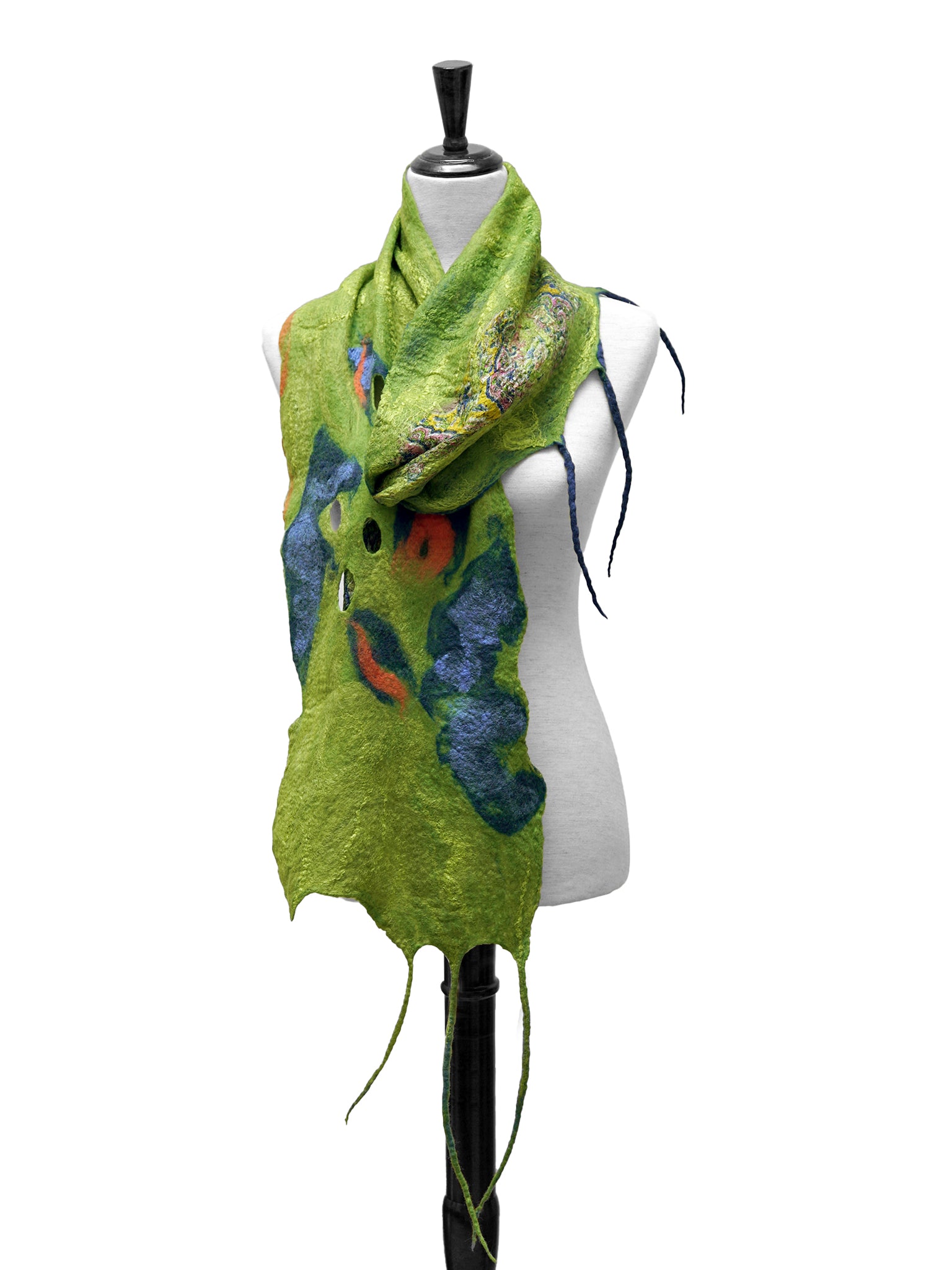 Soothing Delight is designed with luxury and comfort in mind. This felting shawl features a beautiful blend of red wine and garnet colors, perfect for wrapping yourself in warmth and relaxation. From casual to formal, Soothing Delight's luxurious style is perfect for any occasion.