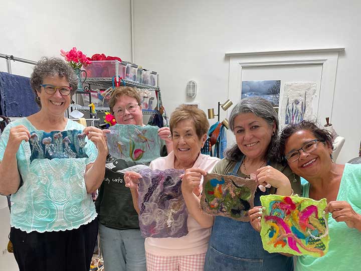 Learn the basics of Nuno felting by making your own amazing artwork! Each workshop will focus on a different method to create a felt art piece with colors and embellishments of your choosing. This class is suitable for children, adults, beginners as well as artists expanding into other mediums.
